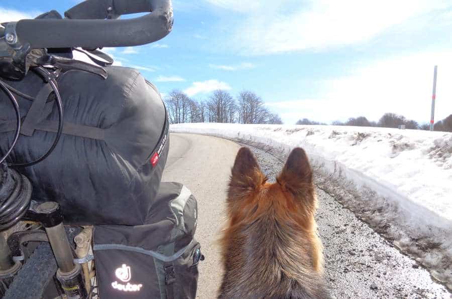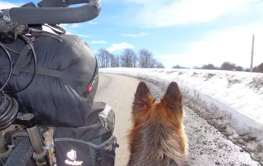 Con sus bártulos y su mascota Azevedo pasó por la Cordillera de los Andes en septiembre, desde Chile. Y en estos días recorre la meseta patagónica en busca de más aventuras.