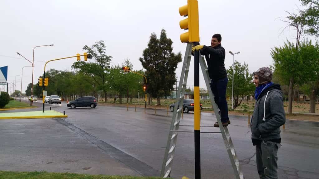 El semáforo sobre Alem y ruta 22 finaliza el trabajo vial realizado para mejorar la circulación y evitar accidentes en el sector.
