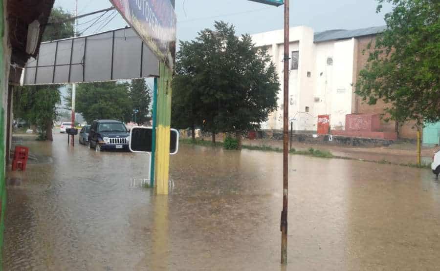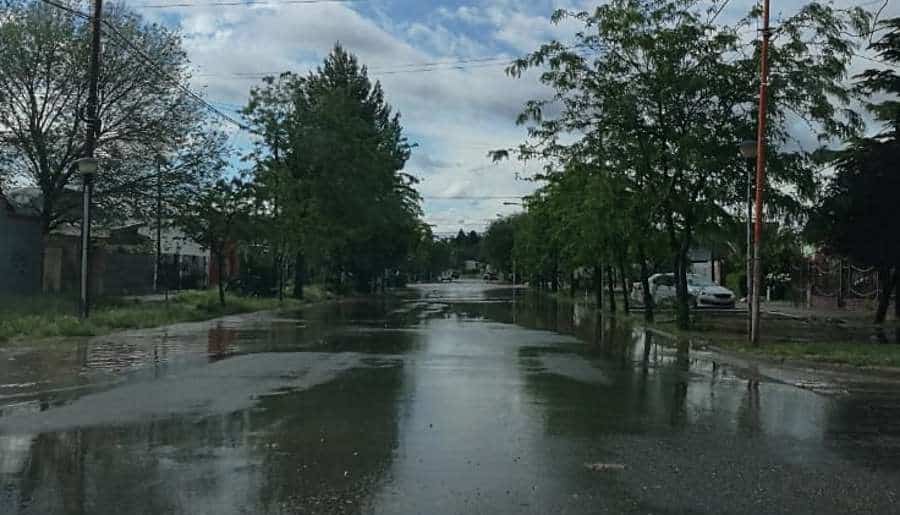 Fueron pocos minutos pero la intensidad de la lluvia generó anegaciones en todos los barrios. El tránsito es dificultoso en las calles de tierra pero también en los lugares donde el desagüe natural provoca problemas cada vez que llueve.