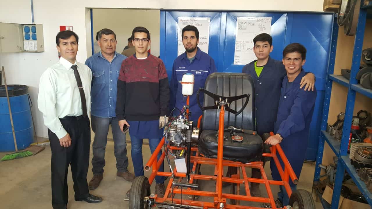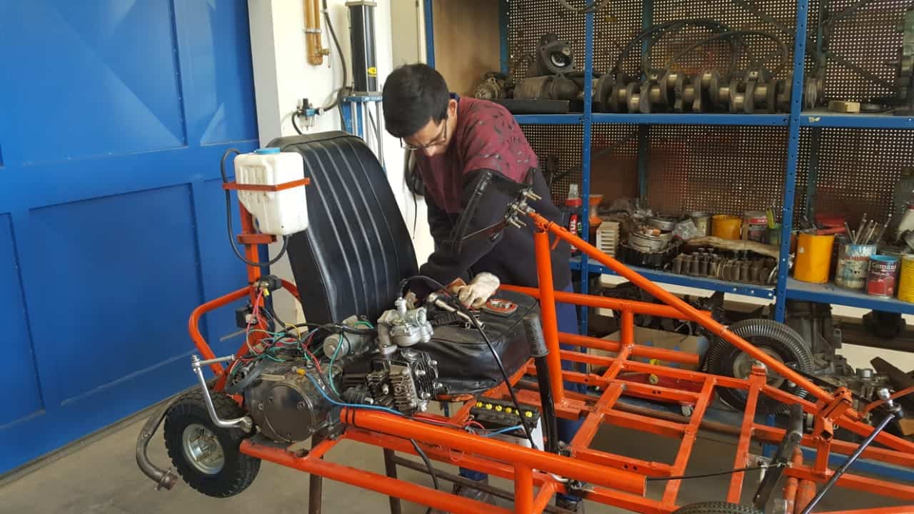 Nehemías Carrasco, que cursa el 5° Mecánica, mostró la construcción del karting que le demandó dos años. “En 4° año, en Soldadura hicimos el chasis y este año, con el profe Walter Banegas la motorización y el mecanismo de fricción”, cuenta. Durante la tarde, se iba a realizar el encendido del kárting.