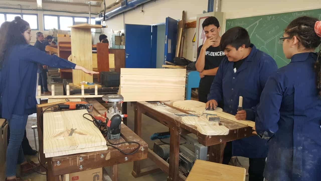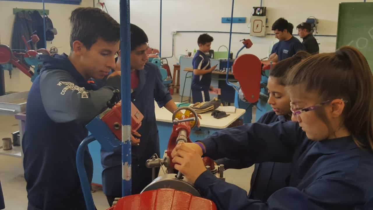 A lo largo de cada uno de las aulas y los espacios de taller se podía ver, según el año y la especialidad – en el ciclo superior Mecánica y Química- los trabajos prácticos que demuestren lo aprendido.