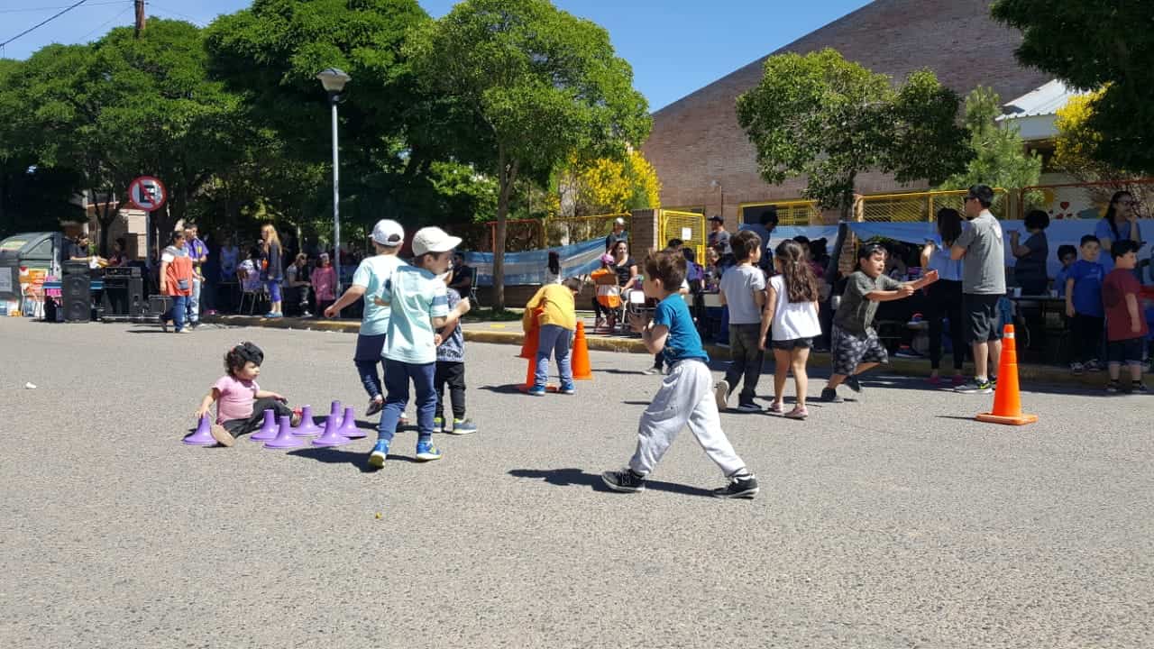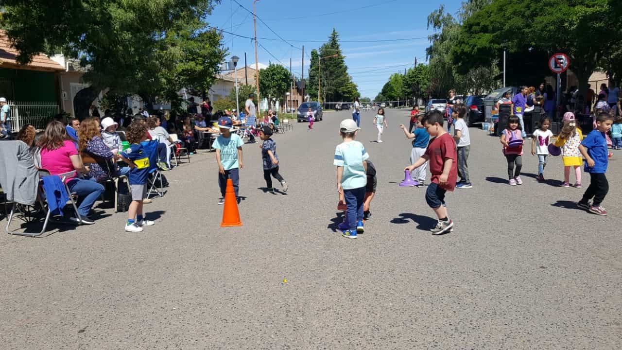 Cada una de las salas, participa con juegos. Las familias también se sumaron para esta jornada. Se cortó el tránsito vehicular a la altura de San Juan y Chubut del barrio Ruca Quimey y de este modo, todos pudieron disfrutar en la calle. Antes de llevar adelante la actividad, se les avisó a todos los vecinos de la cuadra, que hoy se iba a interrumpir el tránsito. El personal municipal, también colaboró.