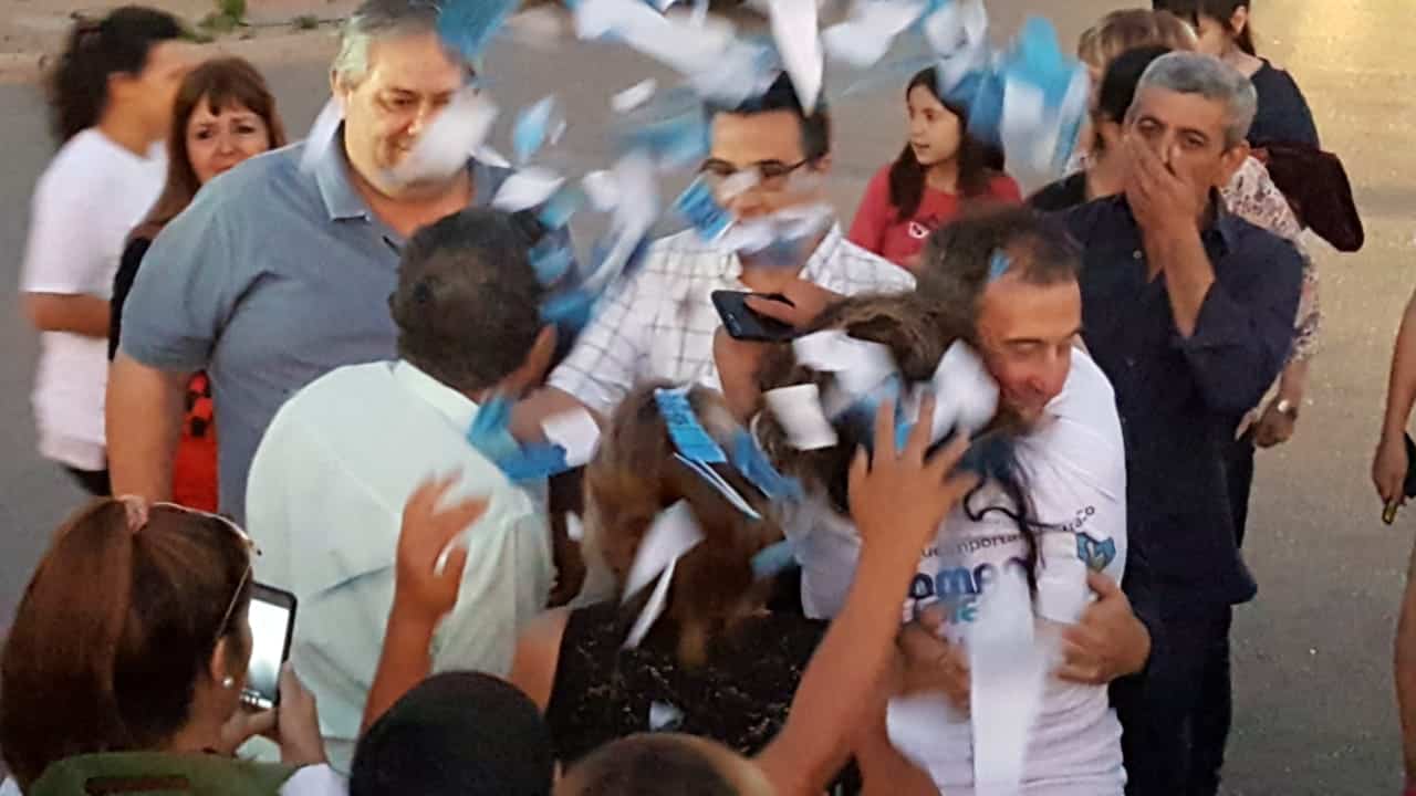 Ricardo Corradi Diez llegó al bunker de la calle Alberdi para saludar a sus militantes y seguidores.