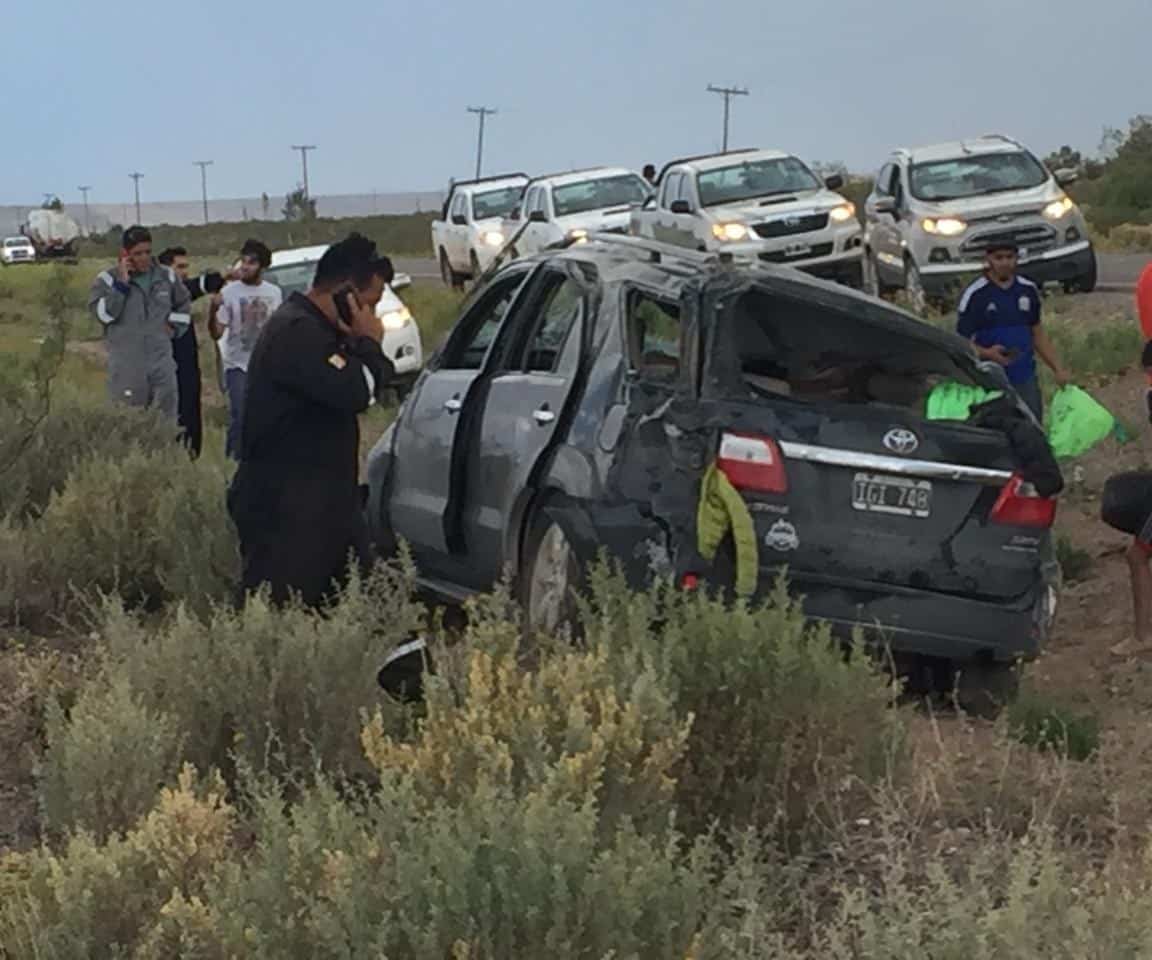 El episodio ocurrió a unos 3 kilómetros del dique y fueron numerosas las camionetas de los trabajadores petroleros que se bajaron a colaborar con los ocupantes del rodado que sufrió el incidente.