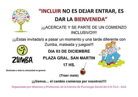 Una de las organizadoras, Ayelén Díaz explicó que la jornada se realizará el lunes por el día internacional de la discapacidad. “La actividad consiste en tres momentos: una clase de zumba adaptada, después una mateada y cerraremos con juegos de integración”, señaló.
