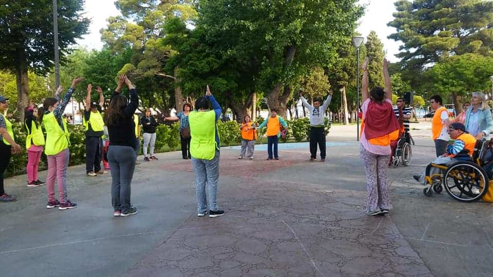 El encuentro fue a las 18, en la plaza San Martín. Se reunieron jóvenes y adultos con discapacidad que participan de este espacio. El grupo funciona desde hace tres años.