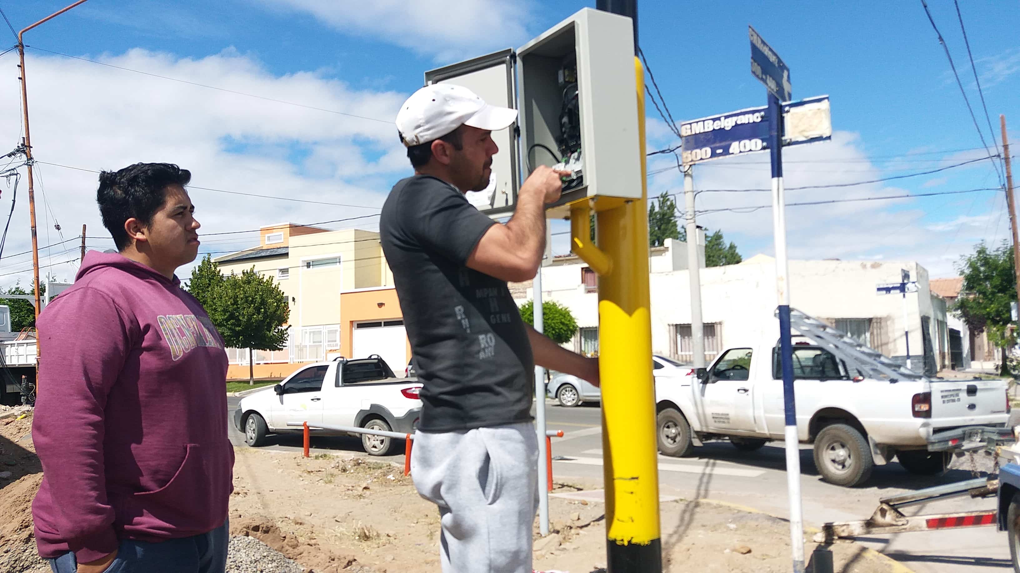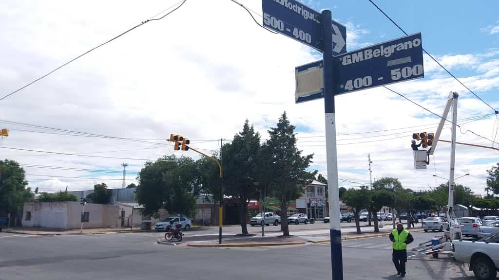 Por otra parte, el semáforo ubicado en el cruce de avenida Carlos H. Rodríguez todavía no estaba habilitado y el personal a cargo ocupó parte de la arteria para montar la grúa y trabajar sobre él.