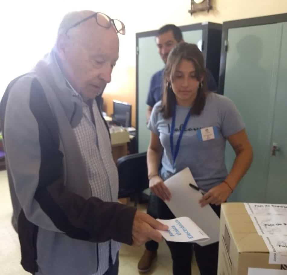 Llegó al establecimiento y pidió sufragar. Las autoridades, le bajaron la urna y la máquina y luego de la correspondiente explicación, Gravino emitió su sufragio. “Estaba contento”, nos comentan sus familiares que nos acercaron esta postal.