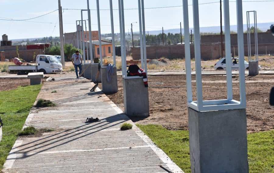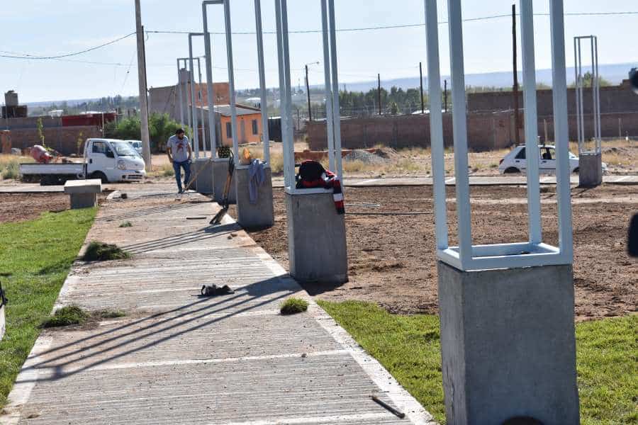 En una etapa siguiente se construyó un playón deportivo, se colocaron las torres de luminarias y la semana anterior comenzó con la colocación de césped sobre gran parte de la plaza y sistema de riego por aspersión.