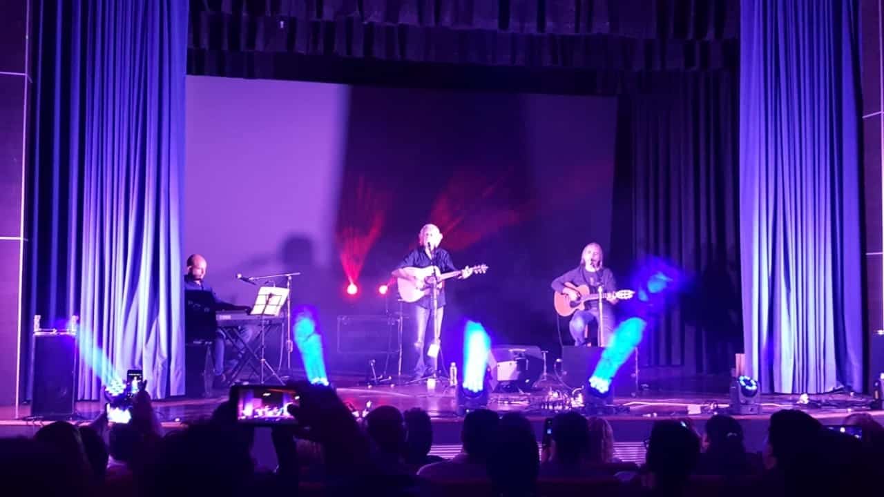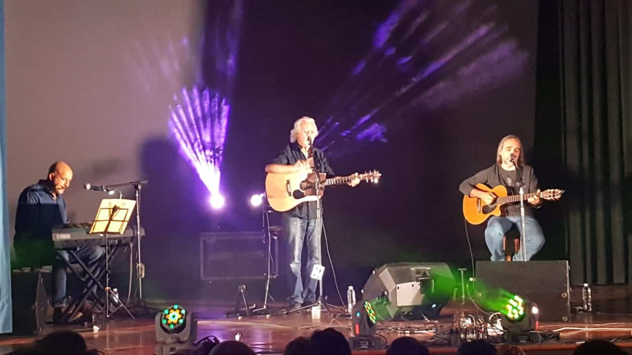 El cantante llegó a la ciudad acompañado por los músicos Fernando Pugliese en piano voces y Ernesto Salguero en guitarra y voces, con quien integra este trío desde hace 25 años.