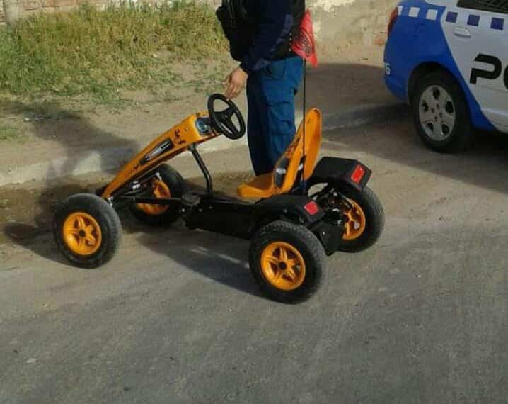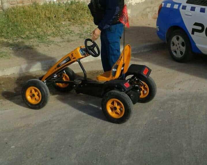 Se trata de un vehículo tipo karting a pedal que se ofrecía en alquiler en la plaza central de Cutral Co. Un hombre lo rentó la semana pasada para su hijo, pero nunca lo devolvió.