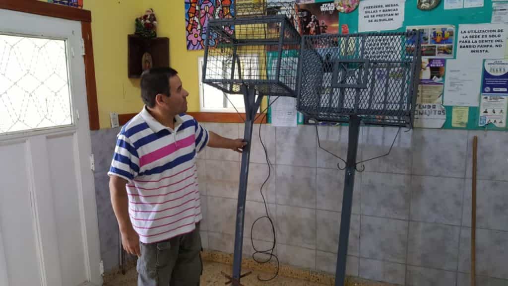 Se trata de cestos de basura que son elaborados por un soldador del barrio. La comisión vecinal los compra y luego los entrega a familias que los requieren.
