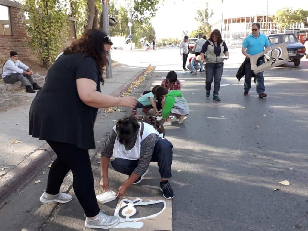 Esta tarde hubo actividades como pintar los pañuelos de las Madres de Plaza de Mayo en las calles.
