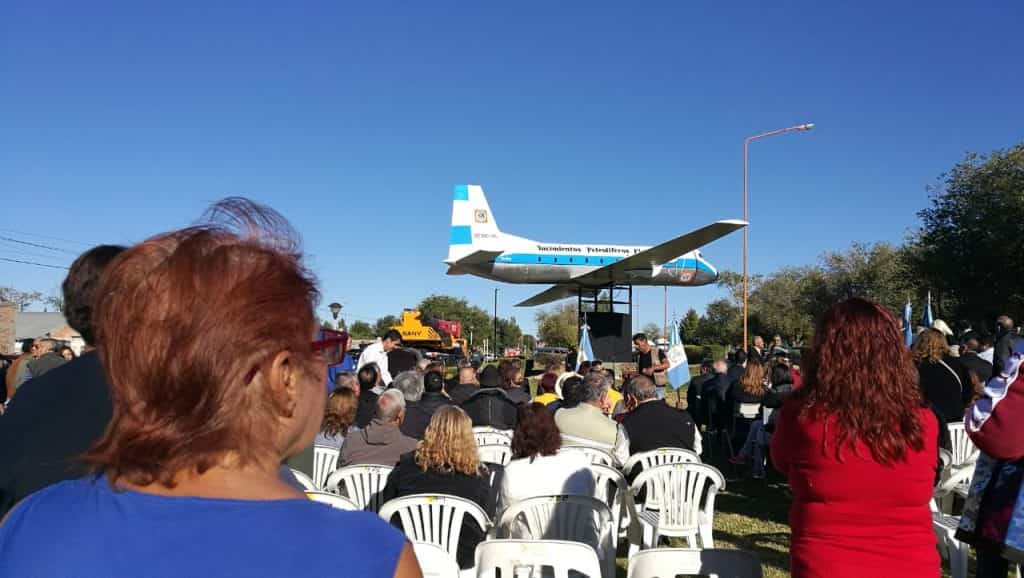En el acto realizado a la vera de la ruta, la réplica del avión intacto recordará esos sueños e ilusiones truncas. Los familiares fueron representados por las hija e hijo de Florentino Zuñiga y la hija de Agapito Bustos. El agradecimiento fue el punto en común. Al intendente José Rioseco, a Ramón Rioseco y a Aldo Beroisa, el artista.
