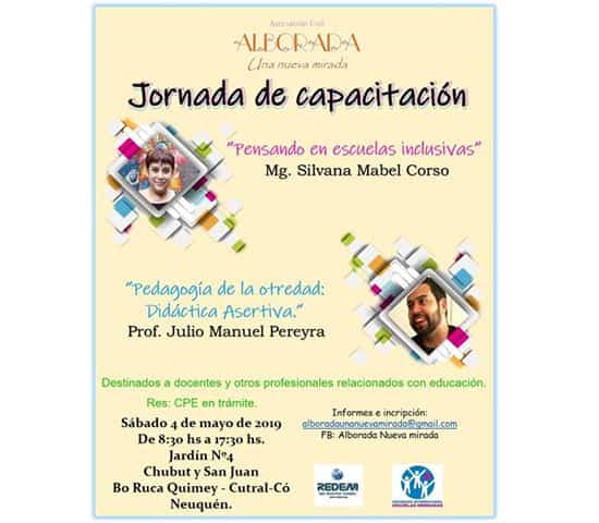 Desde la Asociación Alborada, se informó que este sábado 4, habrá una capacitación sobre “inclusión educativa” en las instalaciones del jardín Nº 4 de Cutral Co.