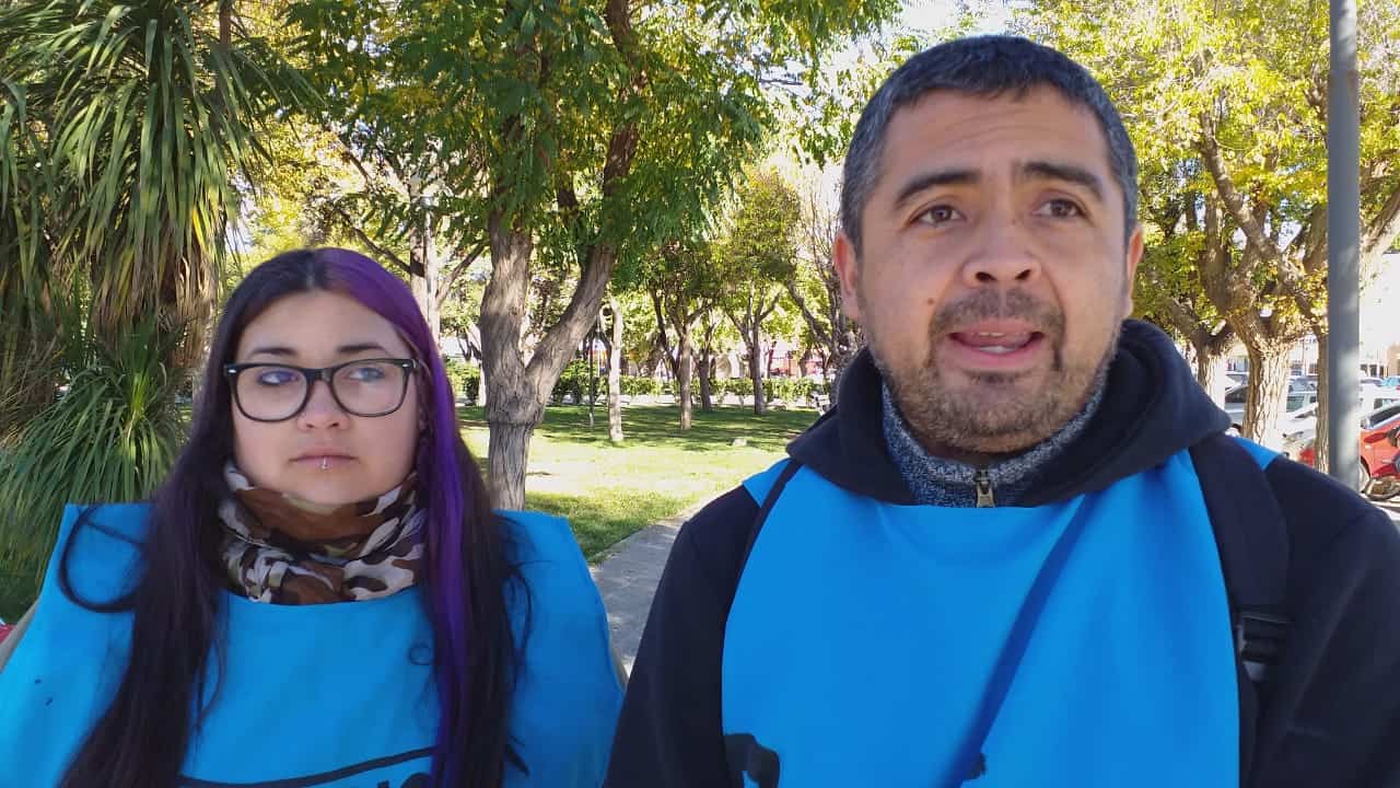Gastón Aravena y Alma junto a los integrantes de la organización, estuvieron hoy en la plaza “San Martín” frente al municipio cutralquense para dar a conocer el funcionamiento de los dos comedores.