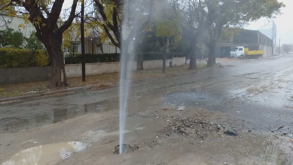 El chorro de agua superaba los 3 metros de altura, alcanzando la copa de los árboles de la cuadra y brota desde la mitad de la calle, obligando a los vehículos a orillarse para pasar por la arteria.