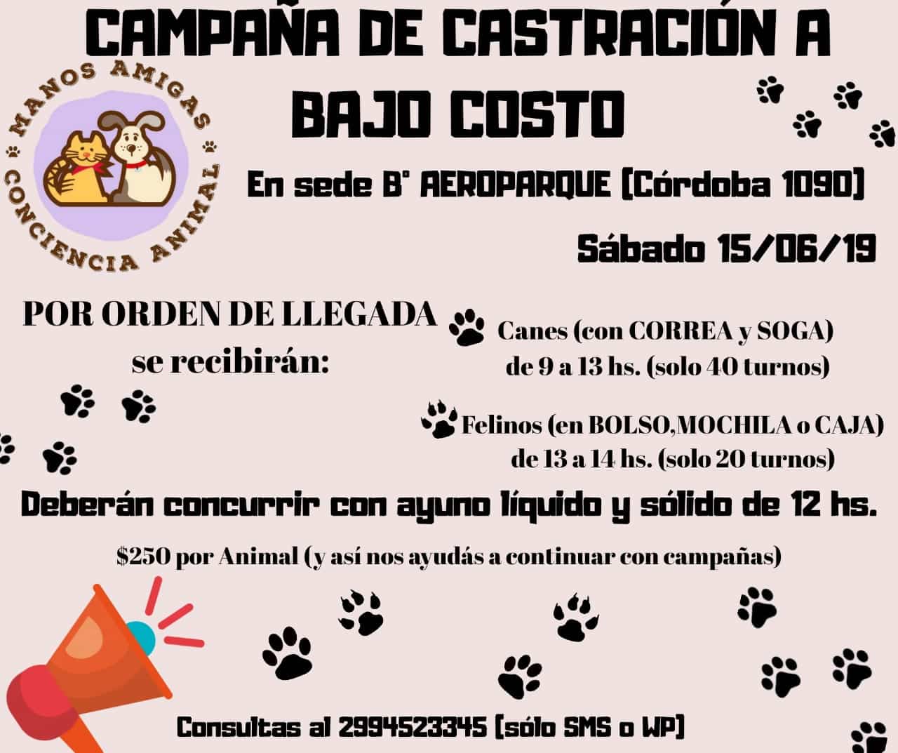 Las esterilizaciones tienen un costo de 250 pesos por animal, que sirven para solventar los costos de estas campañas. A su vez, las agrupaciones recordaron que las direcciones municipales de Zoonosis de Cutral Co (4969084) y Plaza Huincul (4968550) realizan castraciones gratuitas.