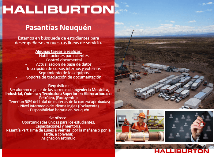 La empresa de servicios petroleros Halliburton está buscando pasantes entre los estudiantes de ingenería de la zona.