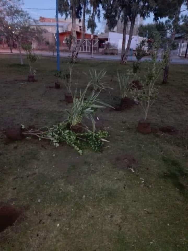 Los vecinos se quejaron por las redes sociales sobre el robo de plantines que colocaron hace pocos días en la plaza.