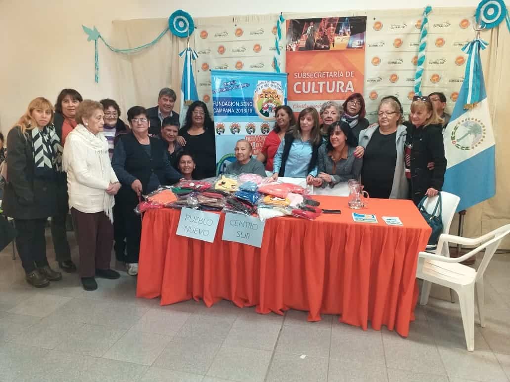 Este domingo, en la casa de la Historia, un grupo de tejedoras que asiste al taller de Manualidades Expres, a cargo de la profesora Juanita Molina, entregó un centenar de gorros a la Fundación SENO.