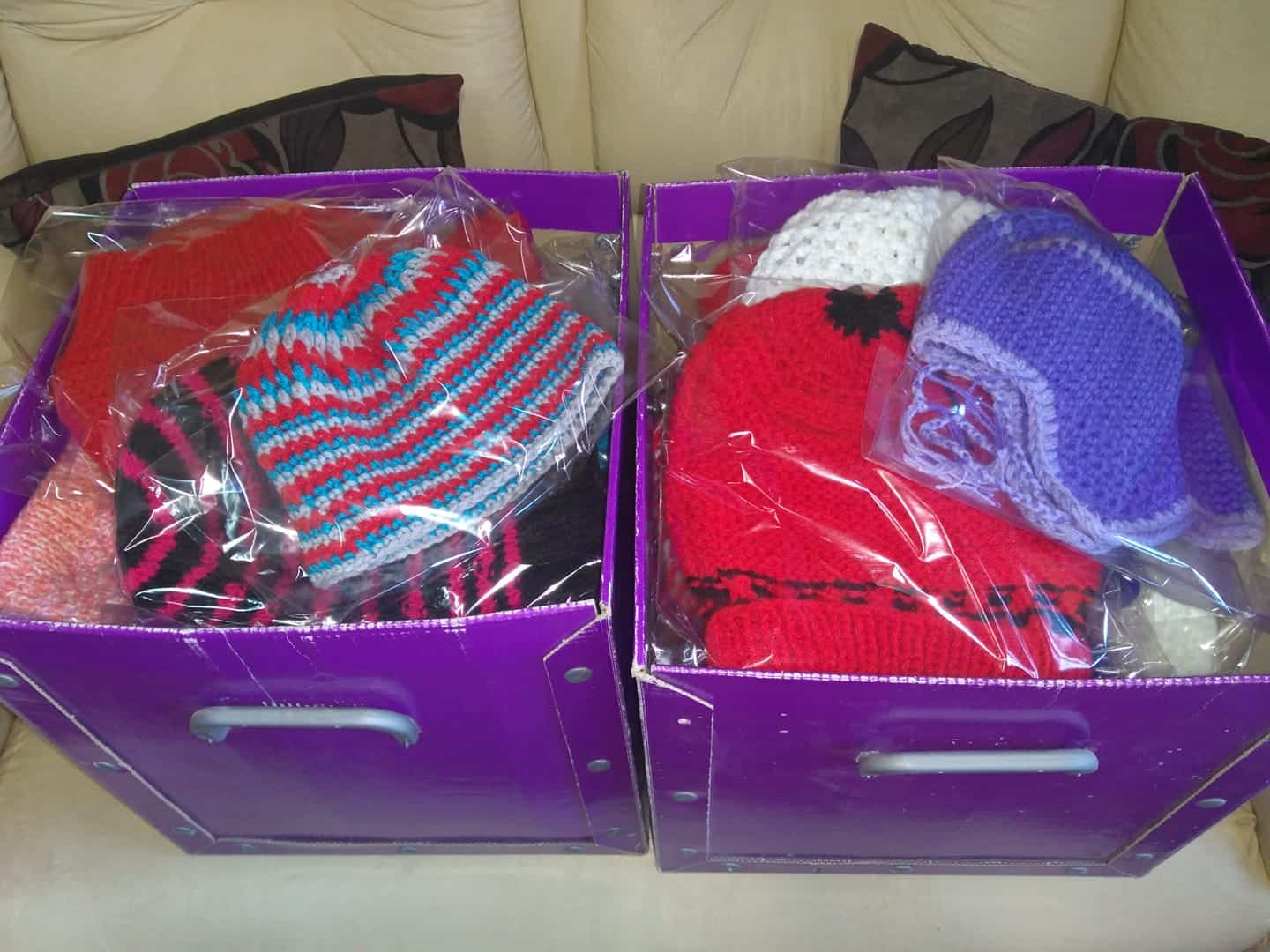 Fueron cien gorritos los que lograron tejer con la colaboración de otras manos solidarias que también se sumaron a la iniciativa.