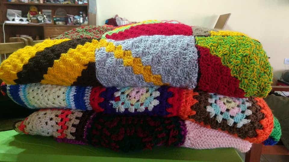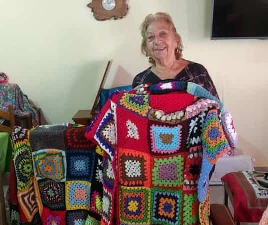 En los últimos días, dos de ellas lograron confeccionar tres mantas a partir de los “cuadraditos” tejidos y luego transformados en frazadas. Tanto en Cutral Co como en Plaza Huincul hay talleres repartidos en los barrios, donde se enseña este arte.