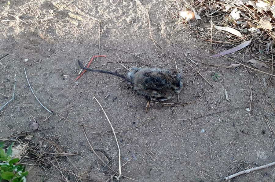 “Quería compartir algo que me preocupó hoy en caminata por la arboleda me encontré con este ratón de cola larga muerto”, explicó. Y mencionó que estaba a la altura del supermercado.