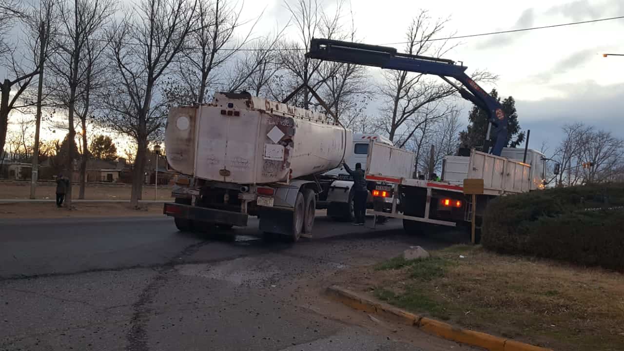 Tras alguna maniobras, que no fueron sencillas, se pudo desplazar el camión del lugar.