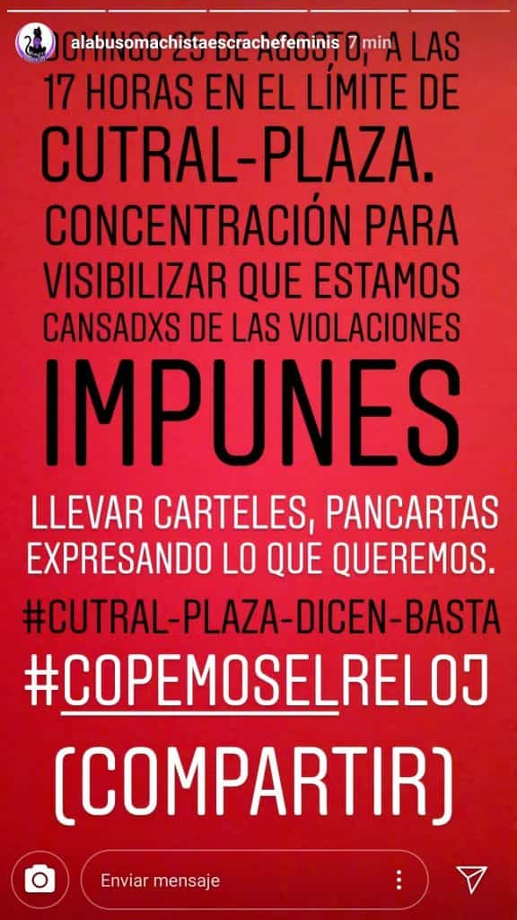 La consigna es “basta de violaciones impunes” porque el caso de la joven abusada no es el primero y no hay cárcel para los responsables. La marcha es este domingo a las 17 en El Reloj.
