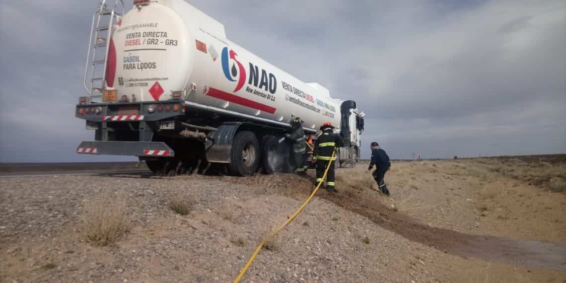 Una dotación de bomberos voluntarios acudió a media mañana a realizar el “enfriamiento” en un camión con carga de petróleo que circulaba por la Ruta 22, a unos 5 kilómetros antes de llegar a Plaza Huincul.