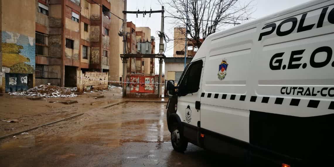 El lugar donde se produjo el enfrentamiento armado está a unos 30 metros del monoblock abandonado, el C9. Se llega hasta allí por una de las calles laterales que desembocan en la avenida 13 de Diciembre. Allí confluyen tres pasillos que conectan con diferentes bloques de edificios. La policía se preparaba allí para intervenir en el enfrentamiento que era en el edificio contiguo, hacia el oeste.