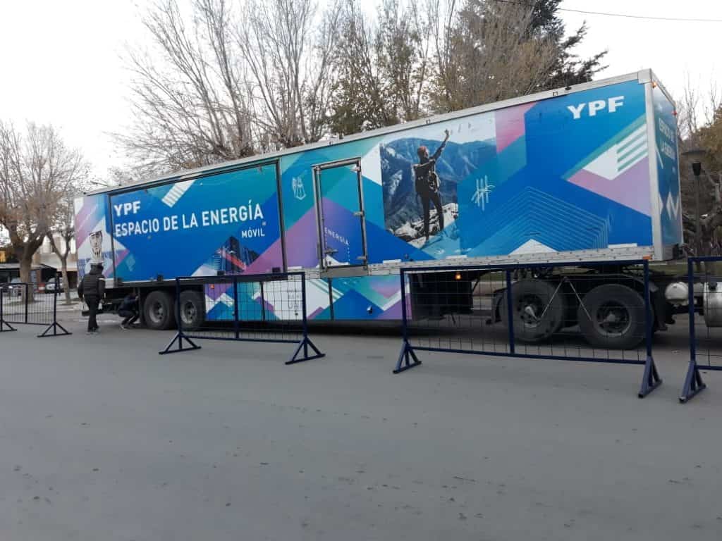 El camión se instaló en la plaza San Martín de Cutral Co. Dentro del camión se accede a una muestra interactiva , con explicación de nuestros recursos naturales, explotación y perforación y ademas de juegos y un micro-cine .