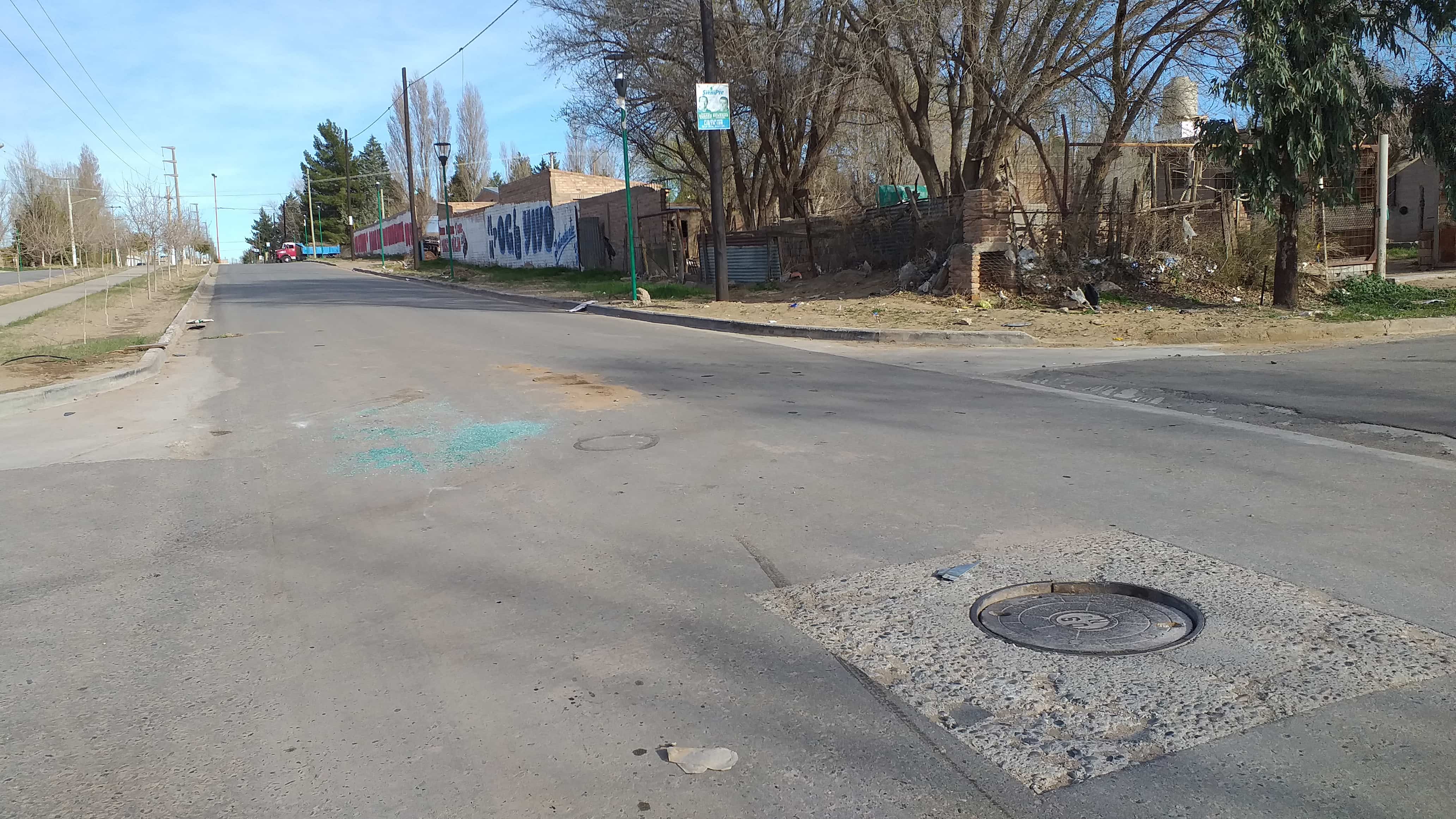 Se trata de la boca de cloacas que está en la esquina de Misiones y Otaño de Huincul. Anoche, un vehículo volcó tras pisar la tapa e impactar con ella.
