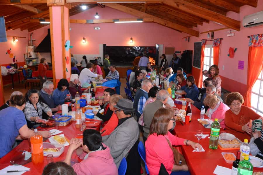 El almuerzo fue organizado por la dirección de la Tercera Edad, a cargo de Ana Villar. Se hizo después de una charla de los jubilados con funcionarios locales de ANSES.