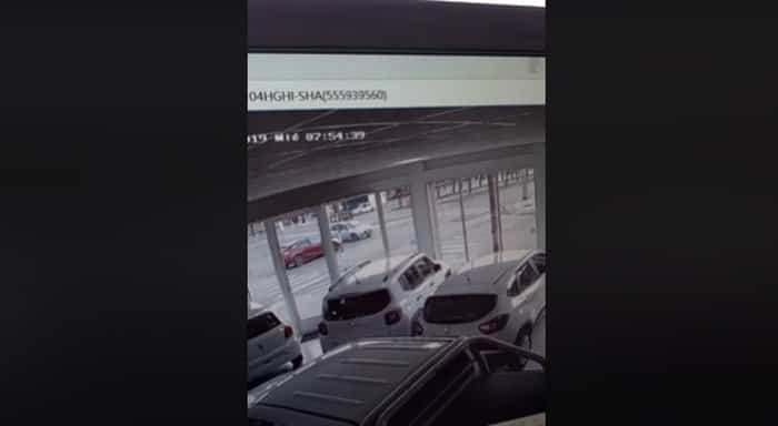 El negocio de automóviles tiene un sistema de cámaras que registró el choque ocurrido el 19 de septiembre en el que resultó herido un niño. El video fue publicado por la radio FM del Sol 98,5 en su página de Facebook y así es posible ver cómo fue que ocurrió.