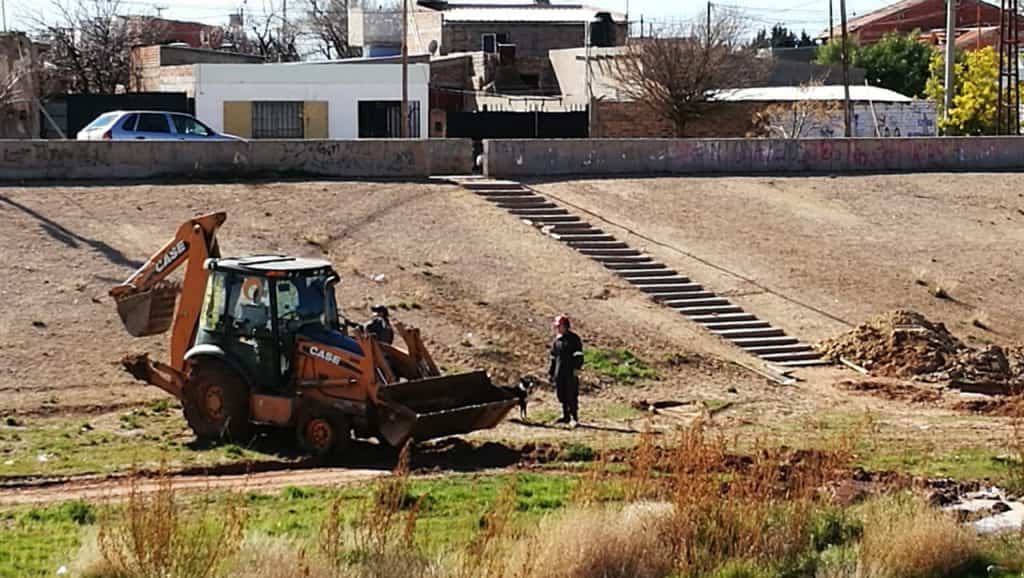 Las tareas de nivelación del terreno en la parte baja del canal colector ya comenzaron y así la pasarela se trasladará unos 300 metros al oeste para optimizar el cruce de peatones.