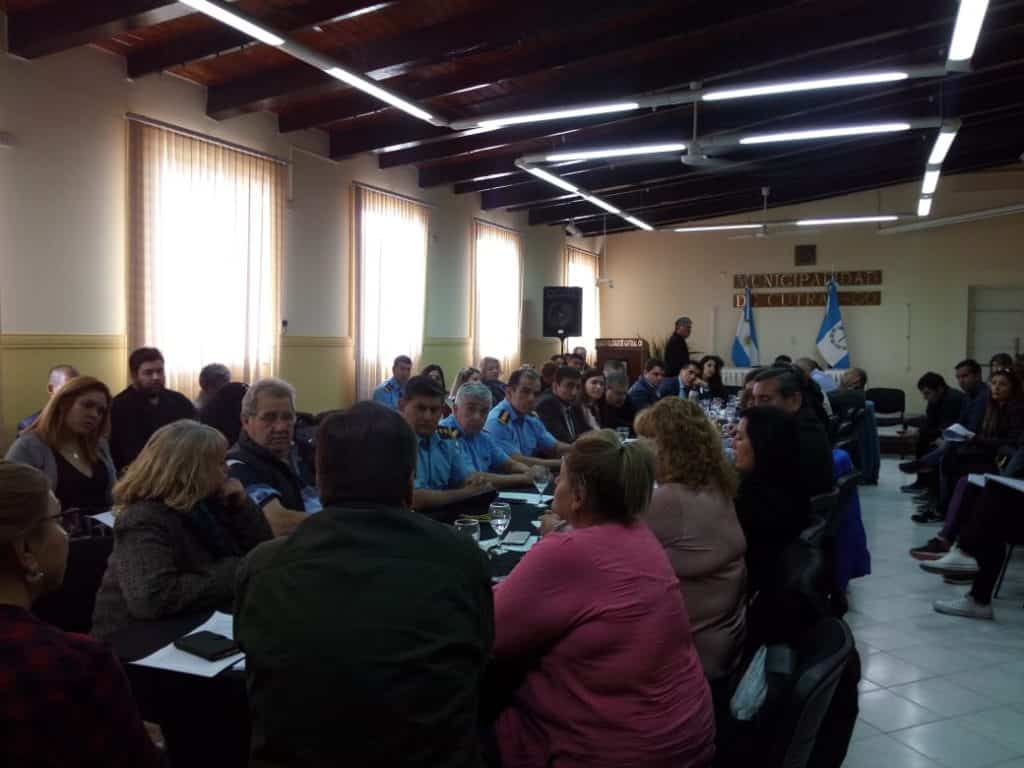 La ministra de Desarrollo Social, Trabajo y Seguridad, Vanina Merlo arribó junto a jefes policiales y otros funcionarios para participar del cónclave.