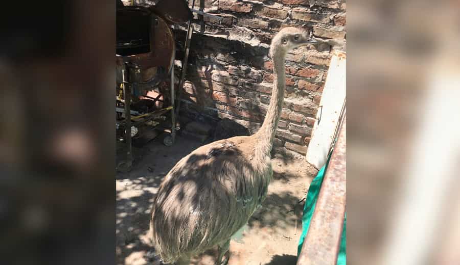 El rescate del choique se produjo luego de una denuncia que se hizo a Guardafaunas. El animal estaba suelto en el patio de una vivienda sobre la calle Córdoba en el barrio Aeroparque.