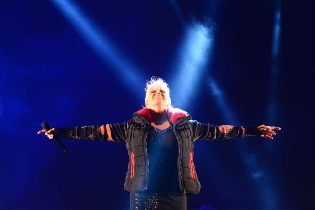La artista de reconocida trayectoria a nivel nacional e internacional, Valeria Lynch deleitó al numeroso público que se acercó hasta el parque industrial para disfrutar del recital, el martes por la noche.