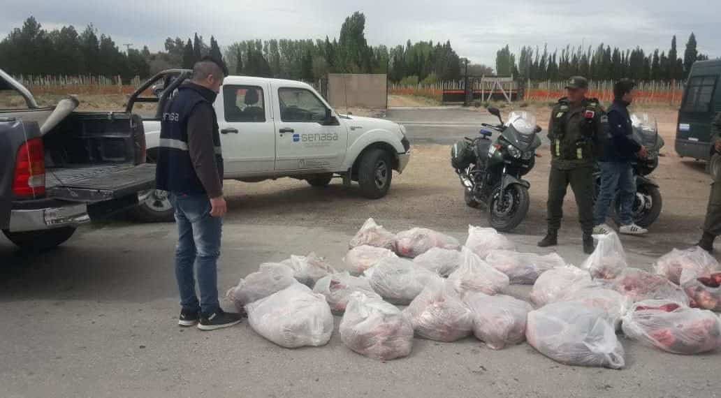 A la salida de Cutral Co se detectó que el vehículo llevaba unas bolsas blancas en la parte trasera. Se determinó después que eran kilos de carne transportados sin documentación ni refrigeración.