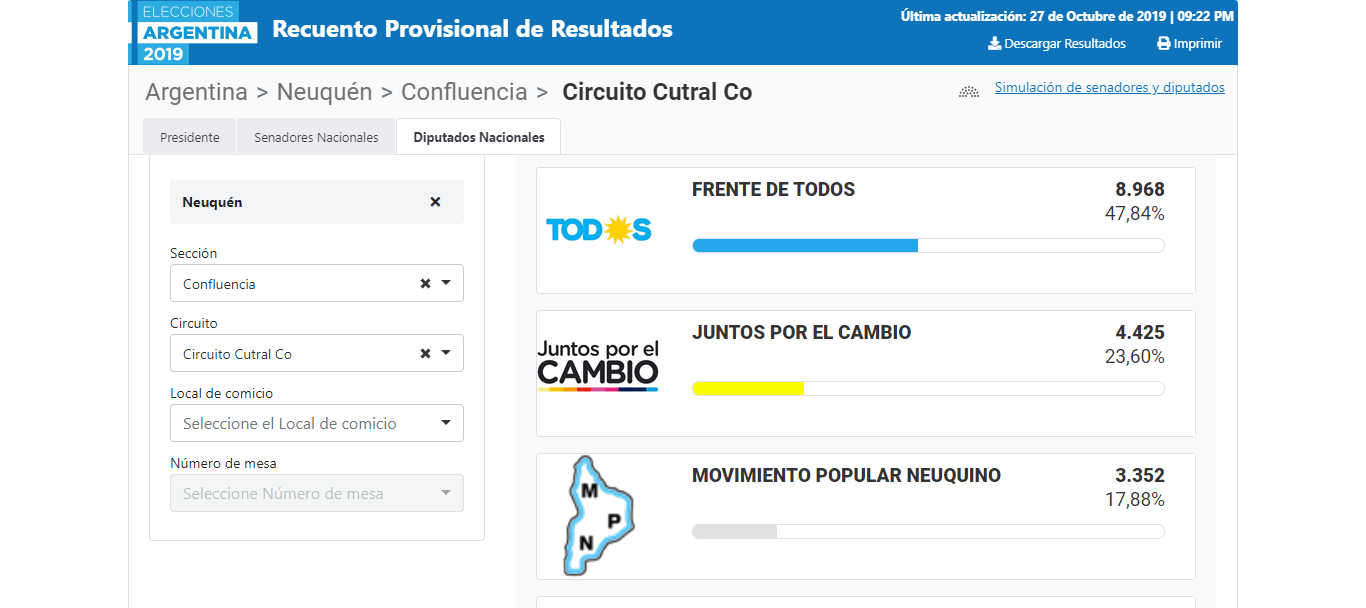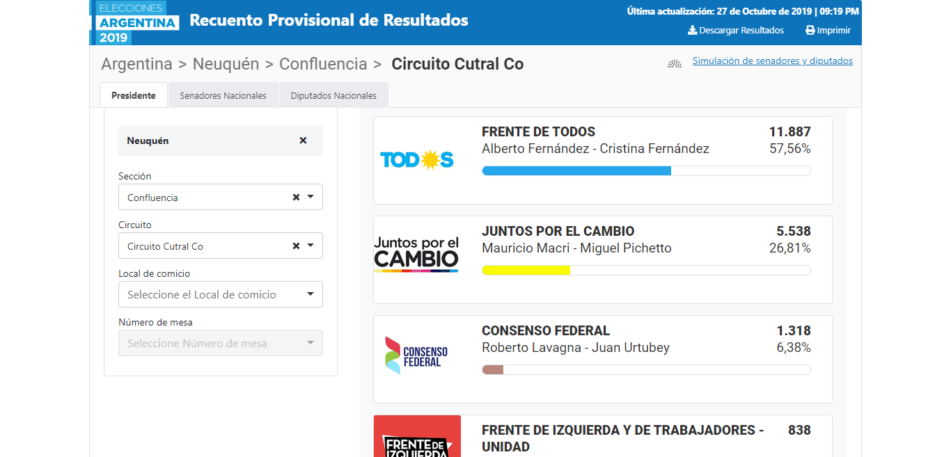 Según los datos oficiales pero según las primeras mesas que se conocen, Alberto Fernández alcanzó el 57% contra el 26.8 % de Mauricio Macri.