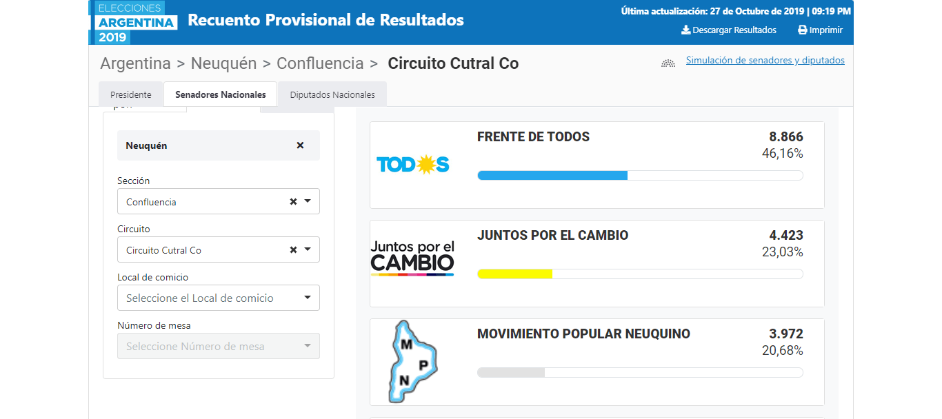 En cuanto la disputa de las bancas del Senado, Oscar Parrili consiguió el 46% de los votos, unos 11 puntos menos que Fernández. Detrás quedaron Lucila Crexell con el 23% y Guillermo Pereyra con el 20%, que logró mejorar su cantidad de votos pero no le alcanzó para ganar en Cutral Co.
