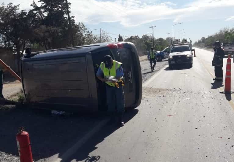 Esta tarde, una fuerte colisión terminó con un vuelco de uno de los vehículos involucrados en la ruta 22, a la altura de la refinería de YPF, en Plaza Huincul.