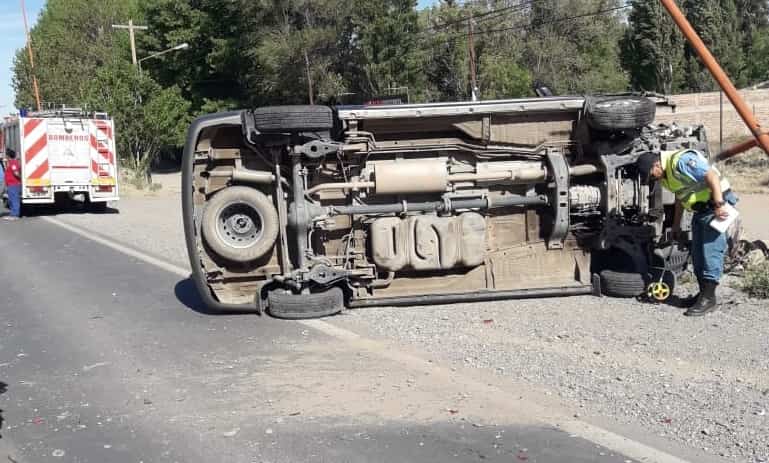 A raíz del fuerte impacto la camioneta terminó tumbada sobre uno de sus laterales y el rodado más pequeño con importantes daños materiales en la parte trasera.