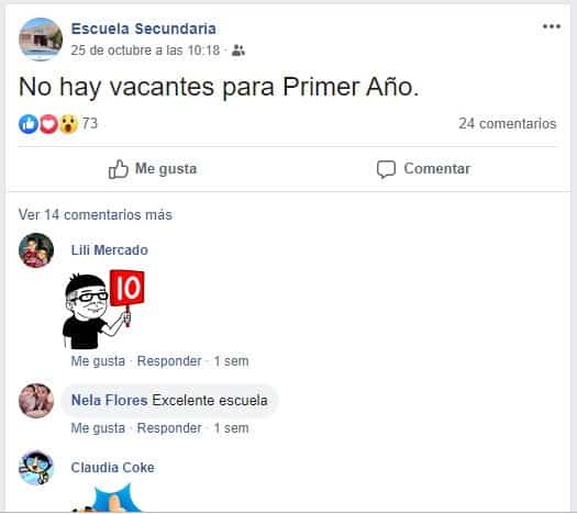 Aunque no lo aclaró, se habría referido a la muerte de Luciano Fuente y la escuela estigmatizada sería el CPEM 20, que se encuentra en el oeste de Cutral Co. Si fuera así, la información no es correcta, porque el CPEM 20 no tiene vacantes.