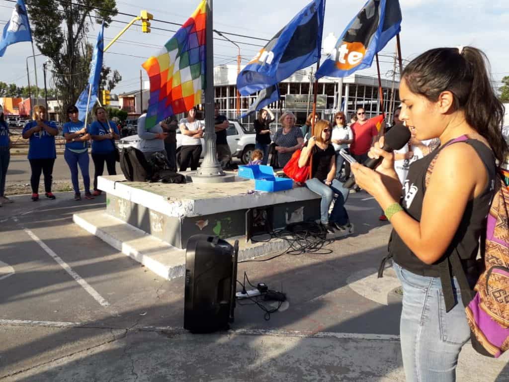 Una concentración que se realizó el lunes por la tarde en la plazoleta de El Reloj que marca el límite entre Cutra Co y Plaza Huincul, los docentes agrupados en el sindicato se manifestaron.