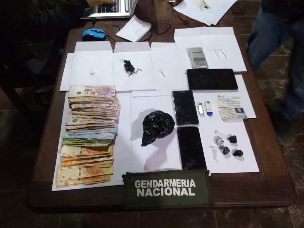 La mayor cantidad de droga se encontró en la calle Sarmiento Nº 850. Los efectivos de Gendarmería secuestraron casi medio kilo de cocaína: 449 gramos; más 13.450 pesos; además de un binocular y una balanza. Un hombre fue detenido y está incomunicado.