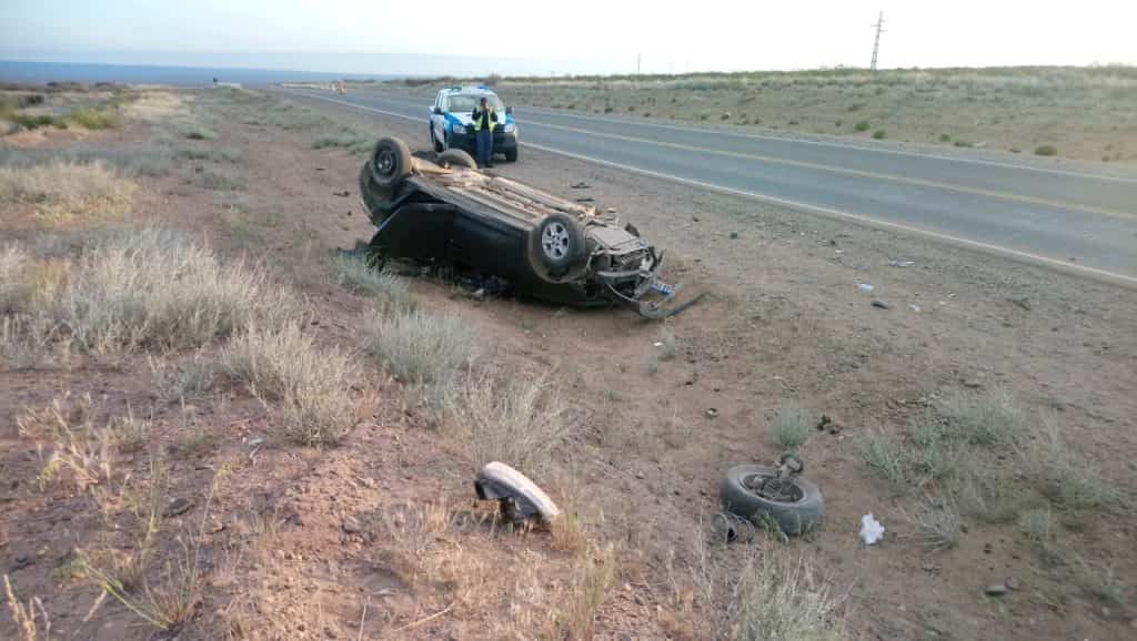 Otros uniformados concurrieron hasta el lugar donde quedó el vehículo y constataron que era un Renault modelo Sandero que había terminado con el techo sobre piso, sobre la margen norte de la ruta 237.
