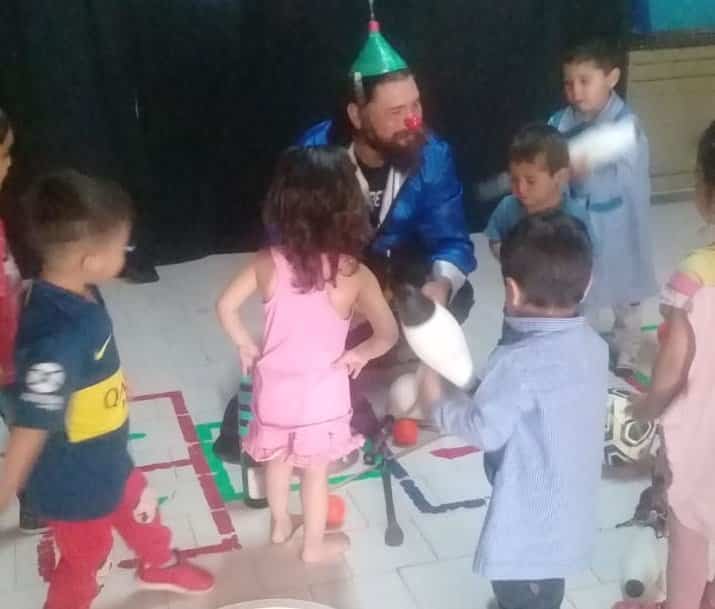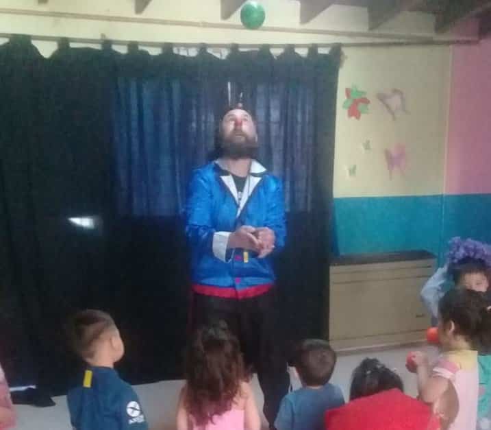 Como retribuyendo el favor, Jesús recorrió el barrio Belgrano durante el fin de semana, llevando su espectáculo de magia y malabares a la UAF Mimitos y al merendero.